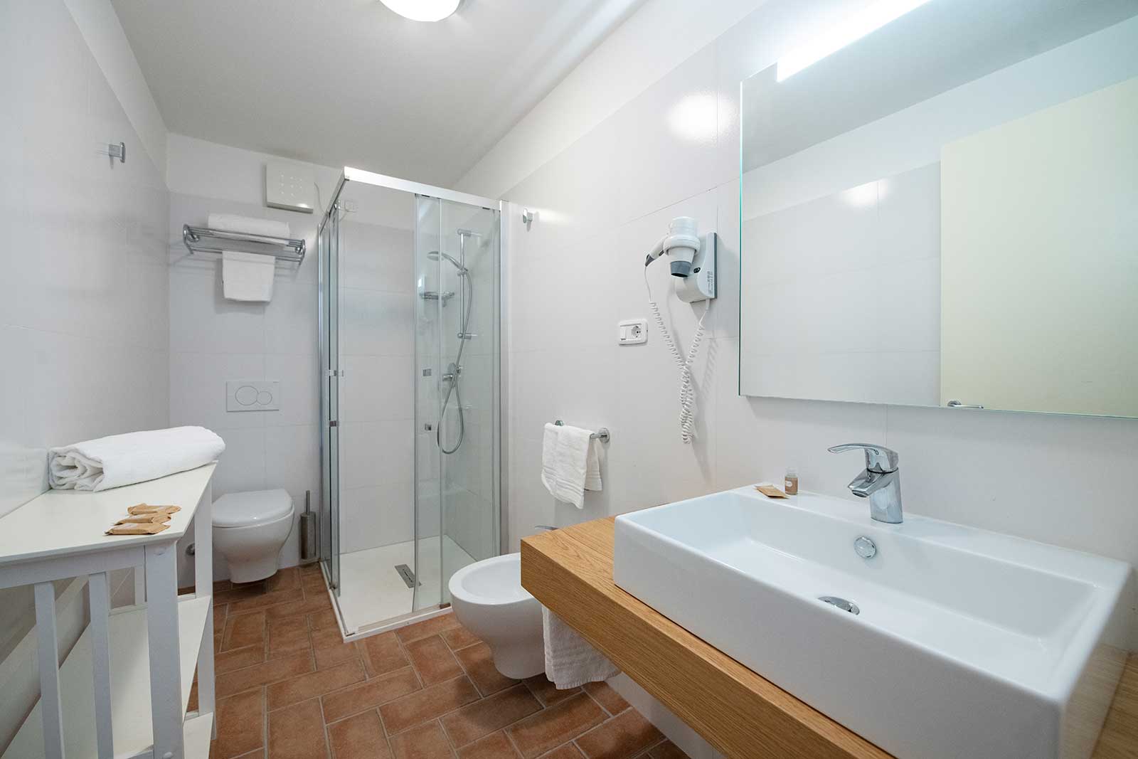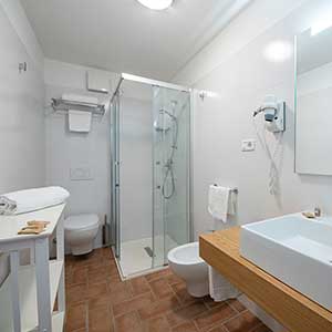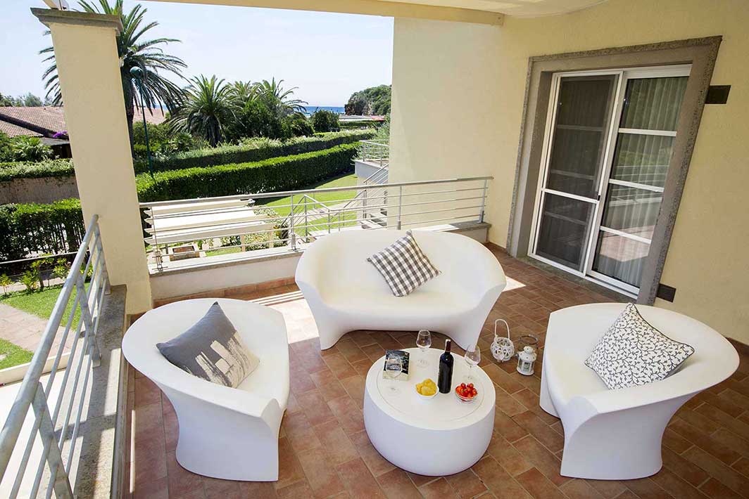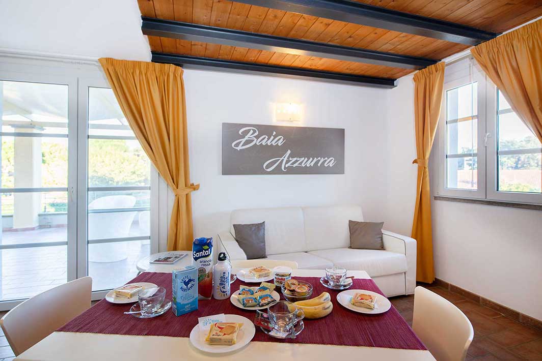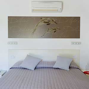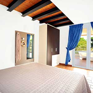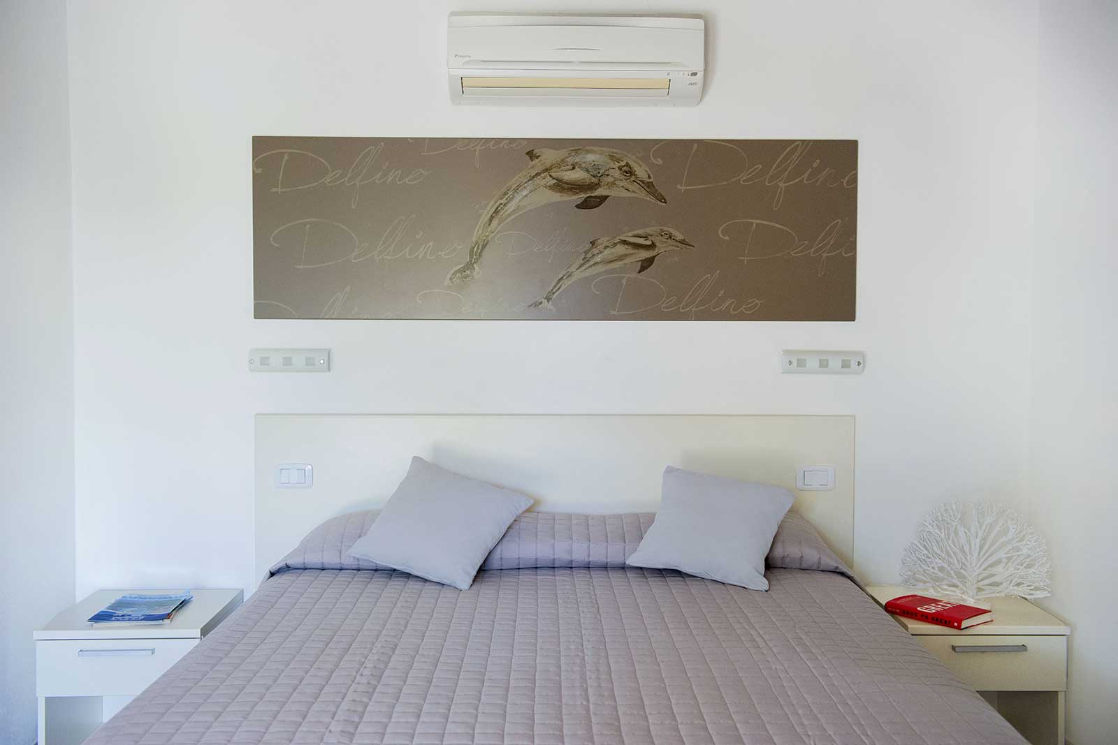 A first floor apartment of 42m2 with an independent entrance, terrace with a sea view equipped with table, seats, sunbeds and barbecue, a double bedroom (+ extra bed), bathroom with shower, bidet and a wall-fitted hair dryer, living-dining room with double sofa bed, an equipped kitchenette, dishwasher, TV, washing machine, microwave oven, warm/cold air conditioning and a safe.