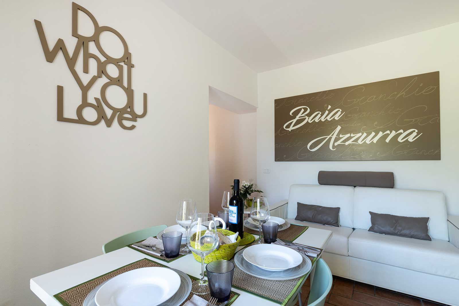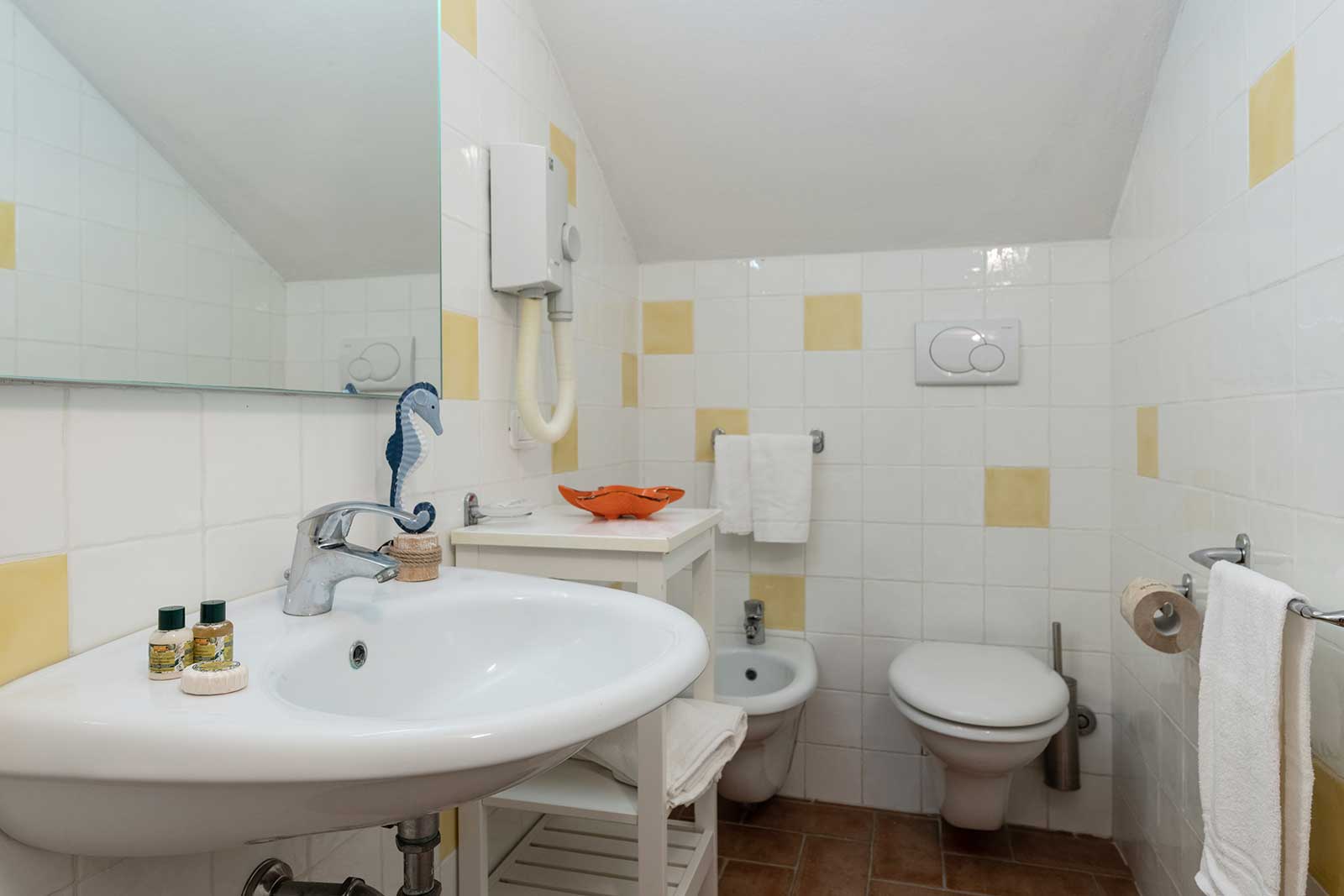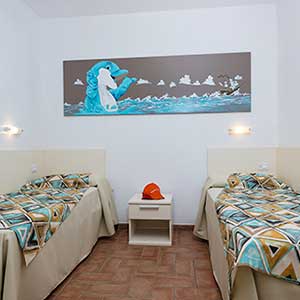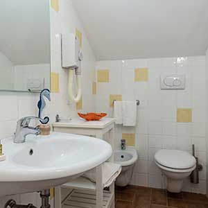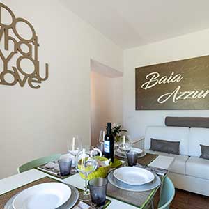 A ground floor apartment of 46m2 with an independent entrance, private garden equipped with table, seats, sunbeds and barbecue, a double bedroom, and a bedroom without windows with 2 single beds, bathroom with shower, bidet and a wall-fitted hair dryer, living-dining room with double sofa bed, an equipped kitchenette, dishwasher, TV, washing machine, microwave oven, warm/cold air conditioning and a safe.