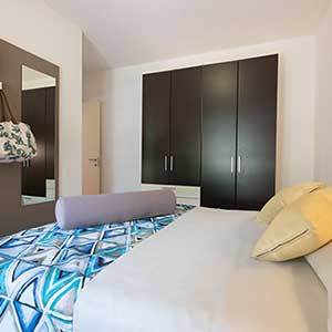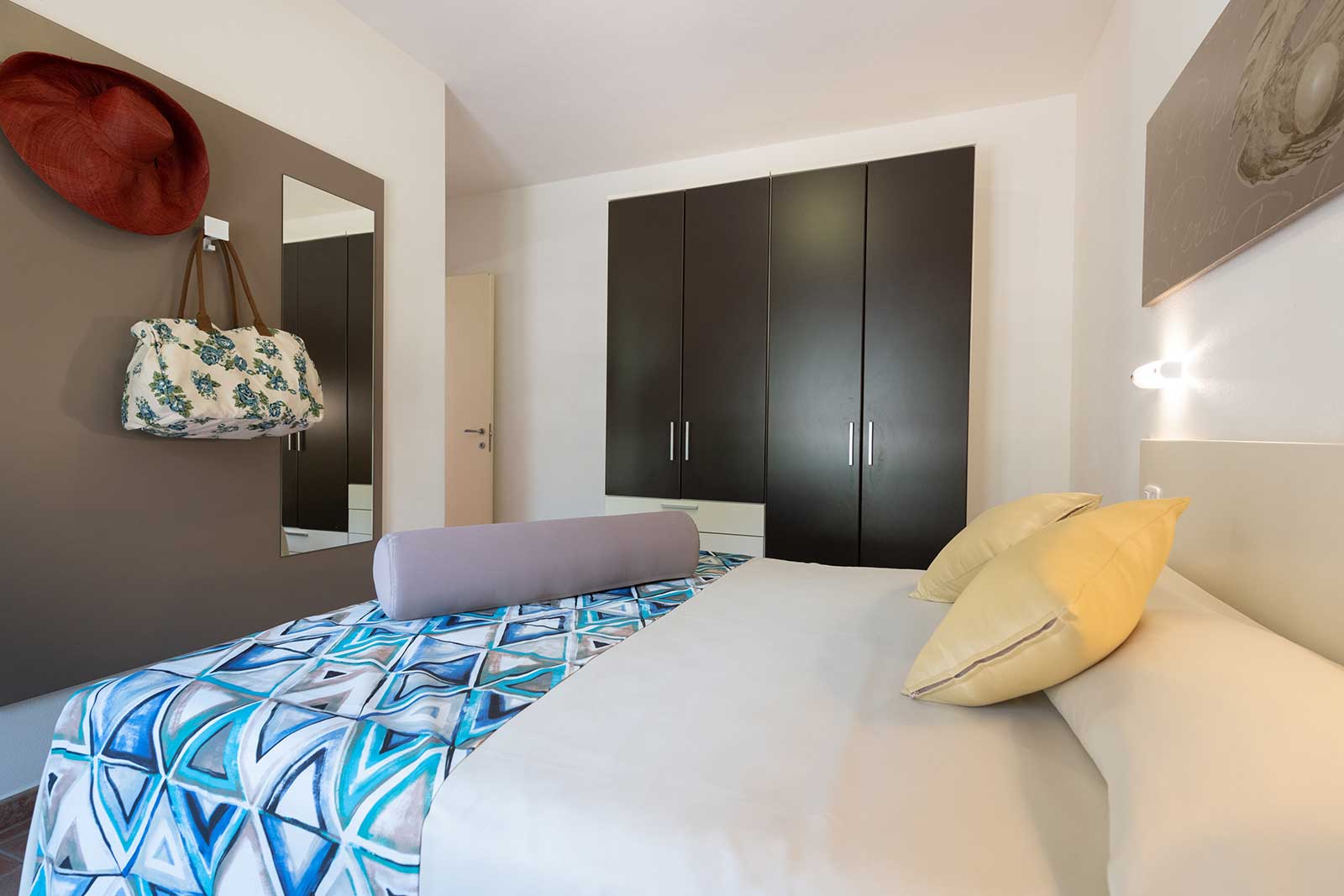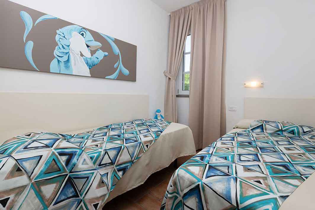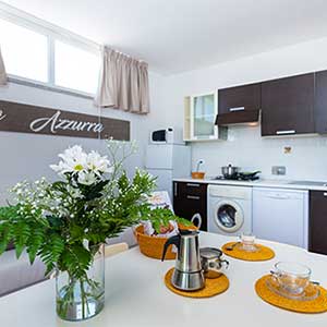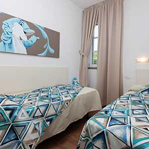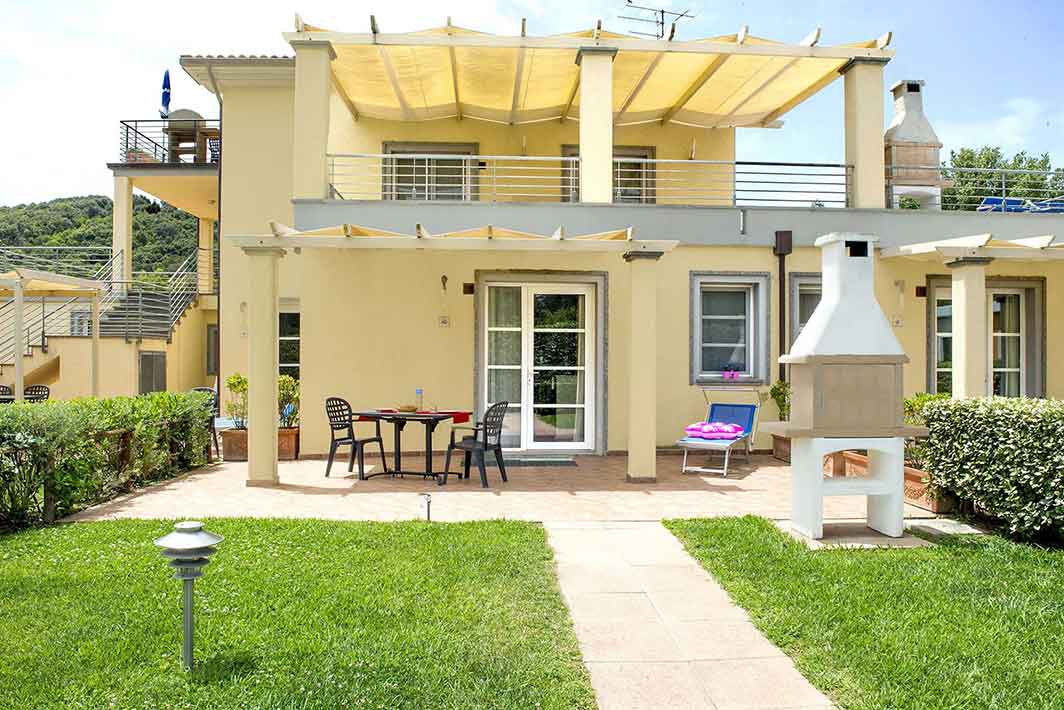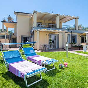 Appartement de 36 m2 au rez-de-chaussée avec entrée indépendante, jardin privé et véranda équipée, chaises, transats et barbecue, 2 chambres (une double et une twin), salle de bains avec douche, bidet et sèche-cheveux mural, séjour avec canapé-lit double, coin cuisine équipée avec vaisselle, lave-vaisselle, télévision, lave-linge, four micro-ondes, climatisation, coffre-fort.